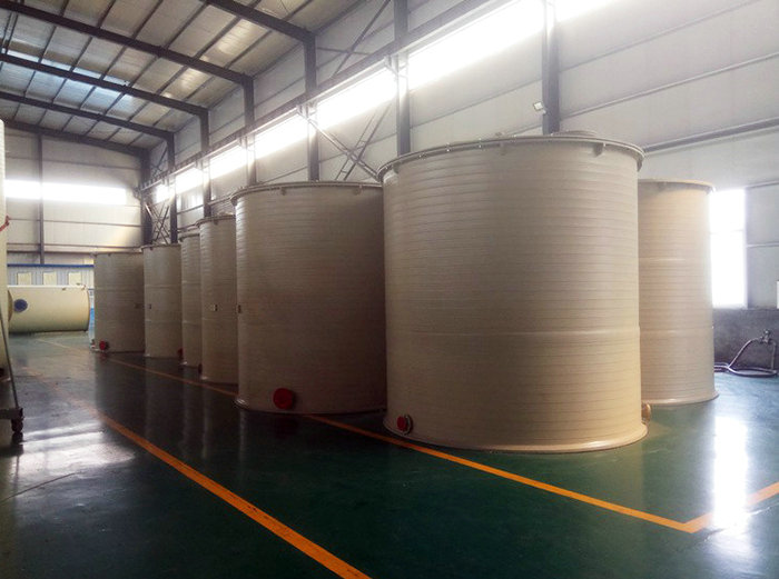 1、采用預(yù)埋地腳螺栓的方式,在牢固的基礎(chǔ)上對(duì)聚丙烯儲(chǔ)罐進(jìn)行水平安裝。