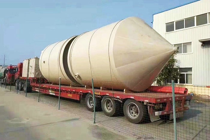 錐底儲(chǔ)罐采用意大利技術(shù)制作,內(nèi)襯層為噴射成型制作,內(nèi)襯層的富樹(shù)脂層樹(shù)脂含量達(dá)95%,內(nèi)襯層樹(shù)脂含量為80%。儲(chǔ)罐內(nèi)襯層采用錐形水泥模具制作,儲(chǔ)罐結(jié)構(gòu)層為整體纏繞制作而成。罐體底部為帶鋼套環(huán)支腿,大大提升儲(chǔ)罐穩(wěn)定性。攪拌型錐底立式儲(chǔ)罐,內(nèi)設(shè)擋流板,罐體頂部設(shè)置支撐架,儲(chǔ)罐輕質(zhì)、高強(qiáng),耐腐蝕性強(qiáng)、使用壽命長(zhǎng)。